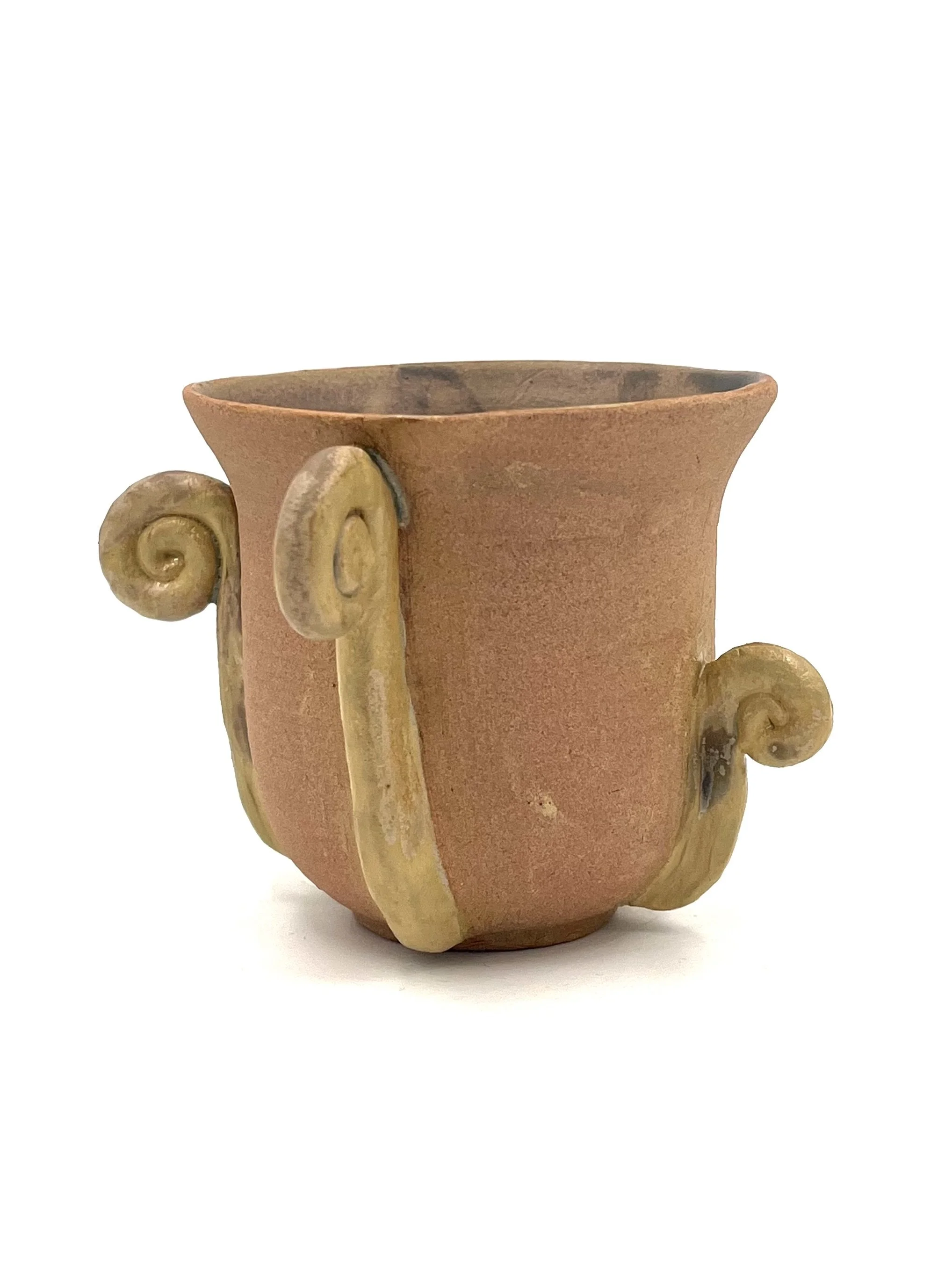 Thrown and hand-built ceramic. Made from French red sandstone, underglaze, clear and oxidized bronze glazes.